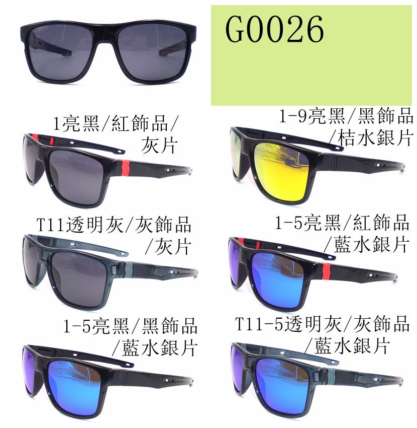 多样设计:鼎坚兴业股份有限公司提供运动太阳眼镜. 休闲太阳眼镜. 宝丽来镜片. 全框款. 骑车、跑步等各式休闲运动皆适合. 台湾制造. G0026的多样化设计