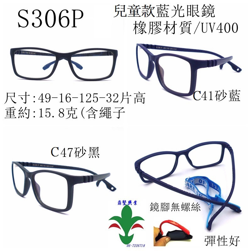 新产品:抗蓝光眼镜,儿童滤蓝光眼镜,橡胶脚镜框抗蓝光眼镜,有效过滤蓝光,可阻挡紫外线 S306P为鼎坚兴业股份有限公司于2021/07/06上市产品