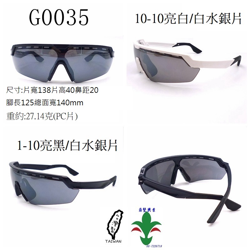 新产品:运动太阳眼镜.休闲太阳眼镜.宝丽来镜片.半框款.有鼻垫. 脚套. 骑车、跑步等各式休闲运动皆适合.台湾制造. G0035为鼎坚兴业股份有限公司于2021/10/28上市产品