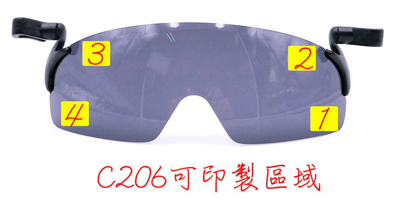 夹帽式太阳眼镜现在提供客制化服务啰!   眼镜客制化的流程非常简单,只要提供您所要印制的内容,及挑选位置(如下图所示)    在确定您的需求后,我们提供眼镜盒图合成服务,帮助您可以在印制之前,先看到模拟的效果    印字的内容可以是文字(不限语种)及图片,可以印刷,也可以雷射      坚持台湾制造,    夹帽式太阳眼镜一直是我们公司的热销产品,一般如果有需要印制LOGO或是文字在镜片上的需求,厂商都会要求最低量(300~600副起跳),