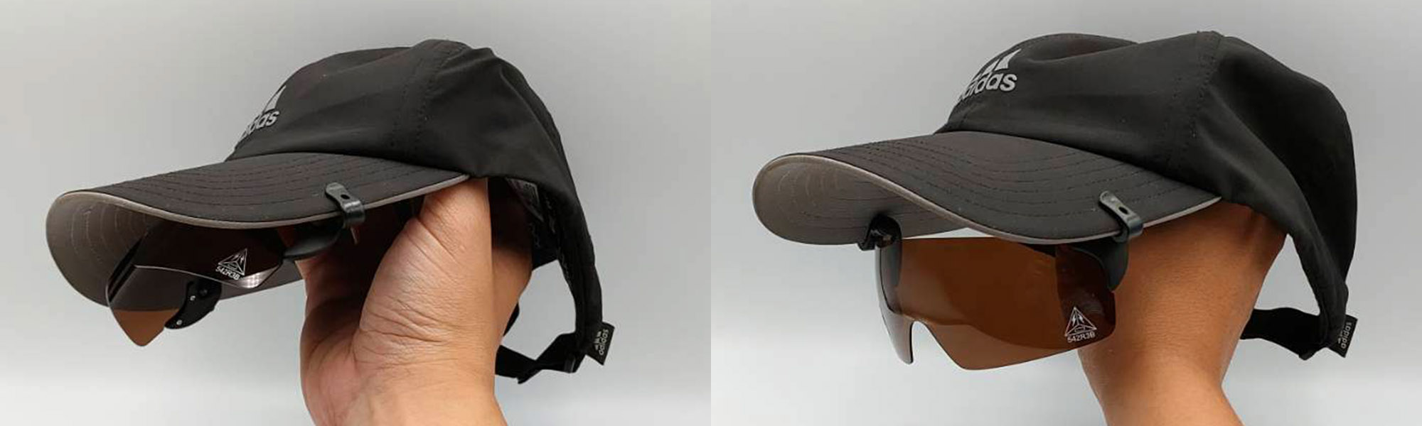 直接夹在帽子上的太阳眼镜,不需配戴太阳眼镜