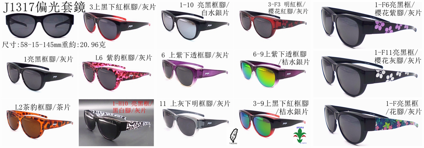 新产品:J1317- 偏光套镜. 太阳眼镜批发. 台湾制造为鼎坚兴业股份有限公司于2021/01/22上市产品
