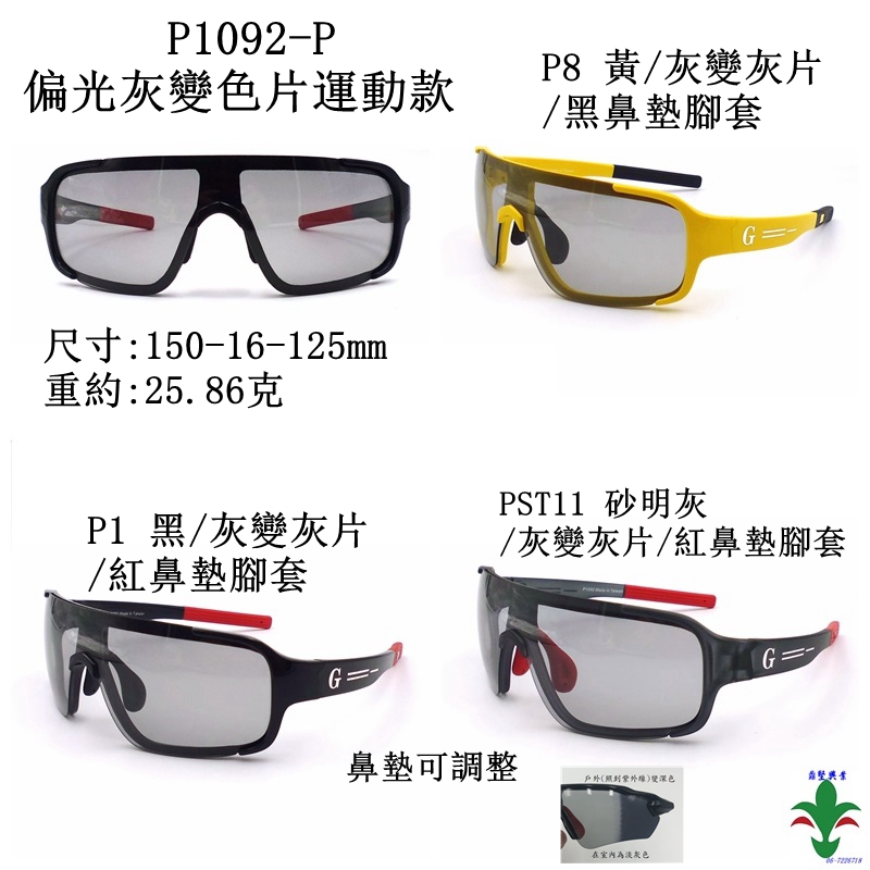 新产品:P1092-P 偏光运动款(变色片).眼镜批发.台湾制造为鼎坚兴业股份有限公司于2021/01/15上市产品