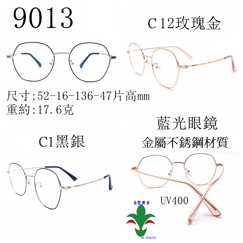 新产品:抗蓝光眼镜,金属镜框成人滤蓝光眼镜,有可调式鼻垫抗蓝光眼镜,不锈钢材质,有效过滤蓝光,可阻挡紫外线,圆形镜片 9013为鼎坚兴业股份有限公司于2021/07/06上市产品